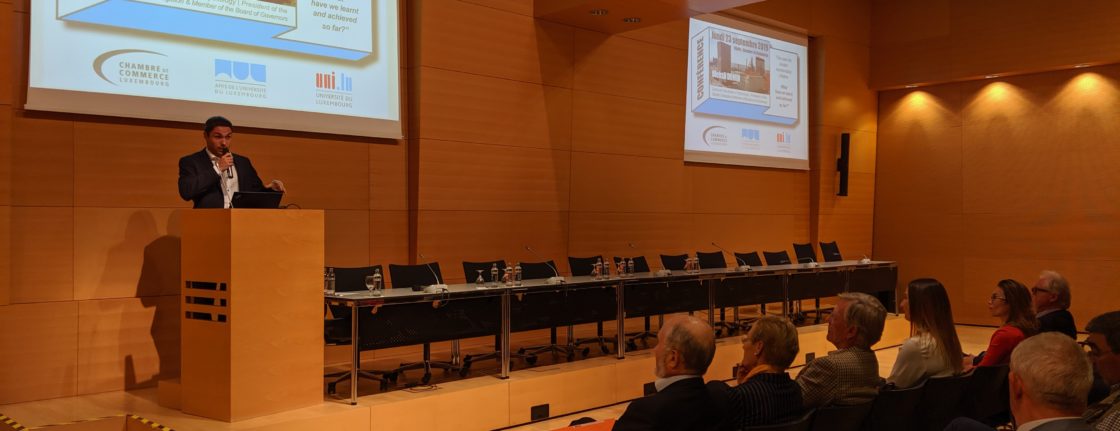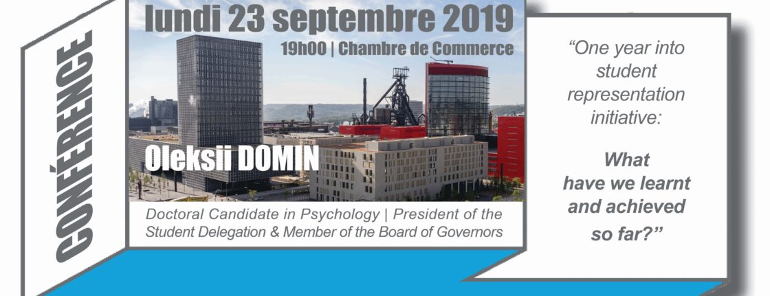En date du lundi 23 septembre 2019 Oleskii Domin, le président de la délégation des étudiants et membre du conseil de gouvernance de l’Université du Luxembourg, a tenu une conférence à la Chambre de Commerce avec le titre: