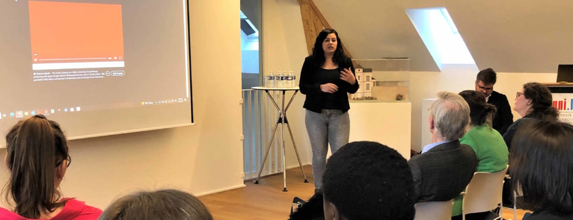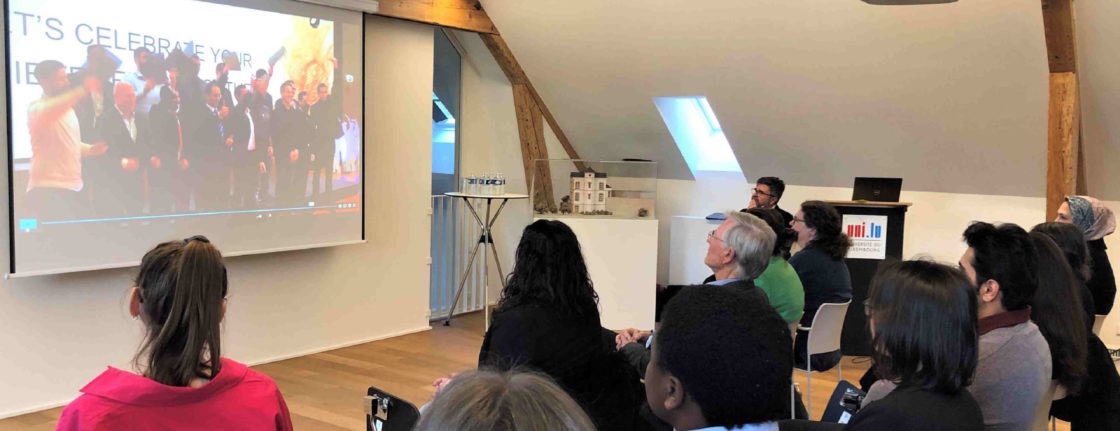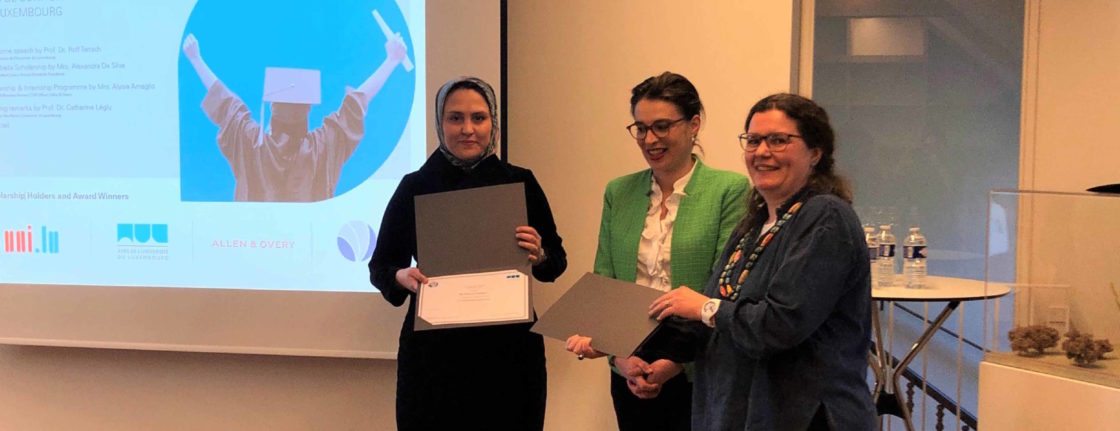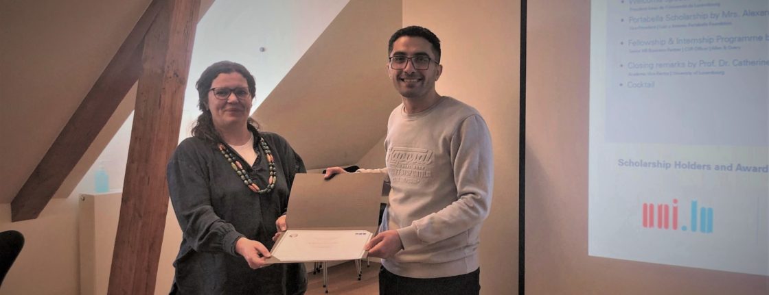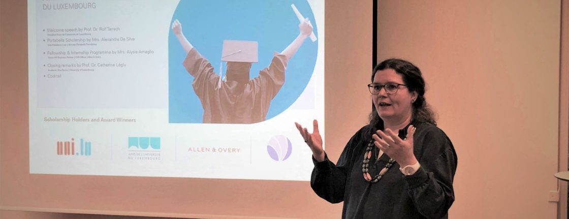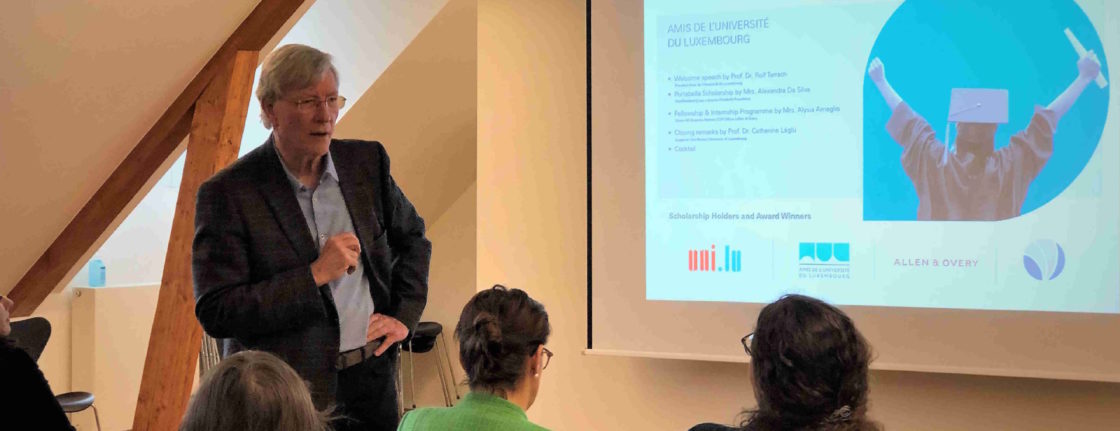 On Thursday 13 April, at the Schuman House, the Friends celebrated the 5th edition of their S.H.A.W. 2023 (Scholarship Holders & Award Winners) and no less than 15 students from the University of Luxembourg received their brand new scholarship there. In addition, some of the Friends award winners from last year and the sponsors of the association also took part in this ceremony in the conference room in Clausen. Professor Rolf Tarrach, President of the Friends of the University of Luxembourg, welcomed all the guests and invited Ms. Alysia Amaglio from Allen & Overy, Ms. Alexandra Da Silva from the Luis y Antonio Portabella Foundation and the Vice-Rector for Academic Affairs Professor Catherine Léglu to join him on stage. After everyone had spoken a few words to the audience, the Portabella certificates were first distributed to these 13 students: