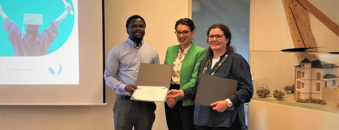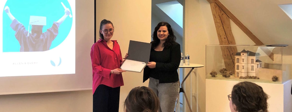 The Allen & Overy Fellowship & Internship in cooperation with the FDEF was then awarded to the following 2 bachelor students: Ms. Klaudia Jaczewska and Ms. Carla Invernizzi. After a cinematic review of the 2 scholarships over the last few years, the ceremony finally ended with a cocktail in the Gilbert Trausch room on the ground floor of the magnificent house. Here are some pictures of the evening: