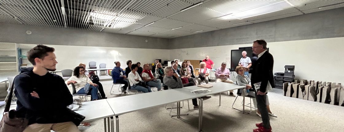 Le 25 septembre 2023, le professeur Florian Hertweck, directeur du programme d’architecture de l’Université du Luxembourg, a entamé sa visite guidée à l’intérieur de la Maison du Savoir, en nous présentant quelques cartes historiques et actuelles du site. Ensuite, il nous a conduit vers des endroits spécifiques du campus. Dans l’ensemble, cette visite avait pour but de mettre en contexte l’urbanisme de Belval, en mettant en lumière les idées, les aspirations, les réalisations, les déceptions et les perspectives liées à son développement.
