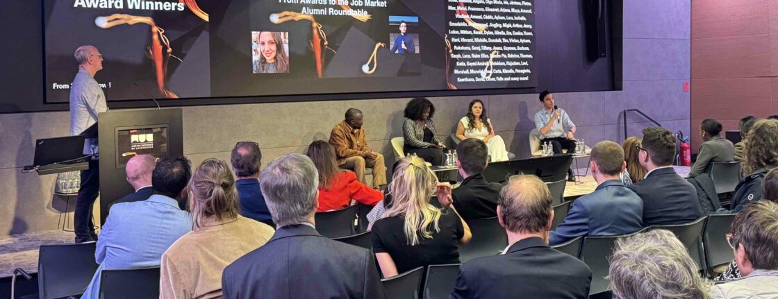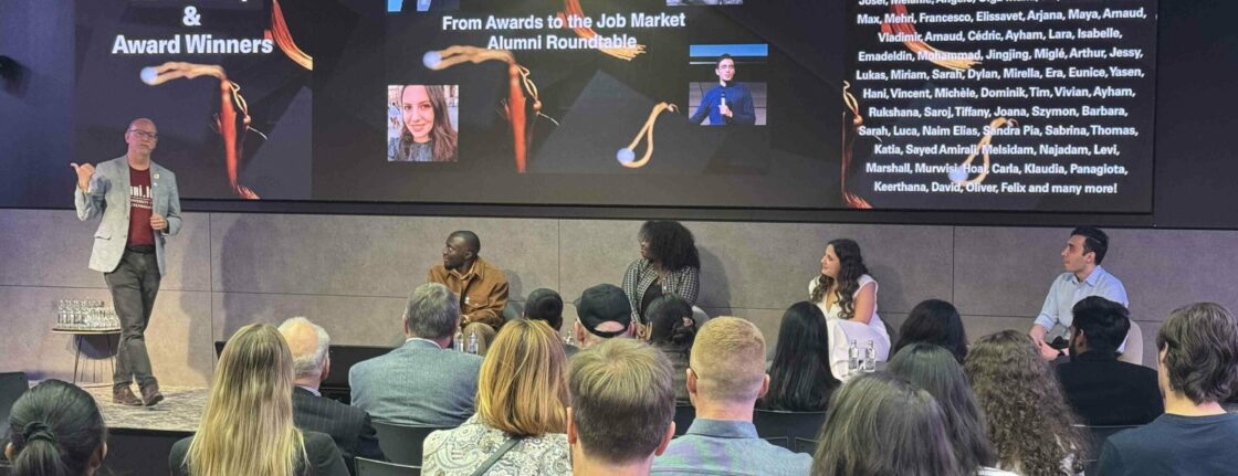 The 4 former scholarship holders – Danial Bajgiran, Jude Forbekom, Astou Ndiaye and Era Pjeshka – shared their inspiring and, at times, emotional experiences of transitioning from students and scholarship winners to young professionals. The event was moderated by Andy Adams, Alumni Relations Specialist, and concluded with a networking cocktail reception.